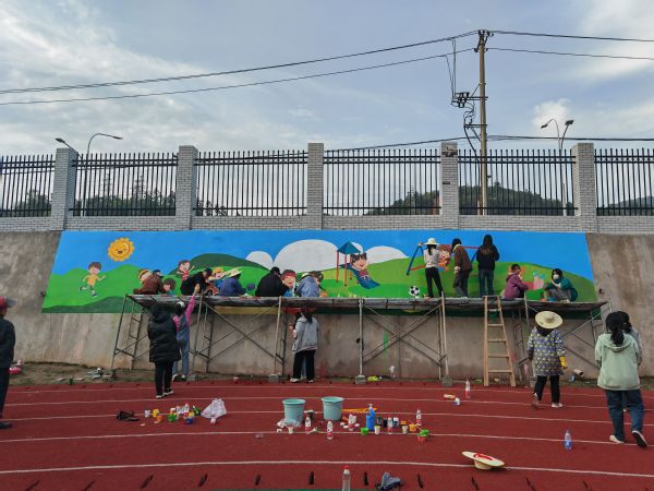 在志愿服务中,志愿者们精心构思,反复讨论设计方案,领工具、调颜料、打底稿、勾轮廓再到上色、丰富细节,每一根线条,每一块色彩,都按照要求有序进行。他们相互配合,不断修改,不断斟酌,有条不紊地完成各项绘画任务,把对雷锋的崇敬和怀念之情深深地融入到绘制美丽校园的墙绘创作之中。每一处落笔都力求精妙细致,用自己的手绘文创作品去宣传“雷锋精神”,最终呈现出不同元素的墙绘图案。