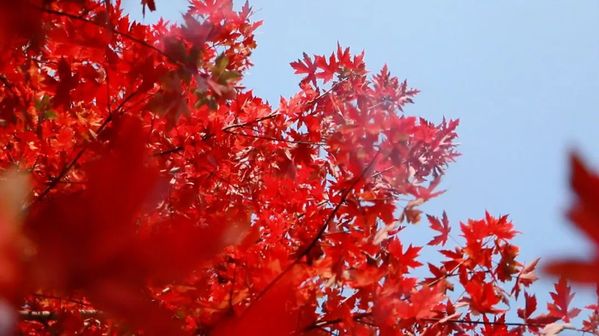 这片蓝色反倒成了枫叶的点缀