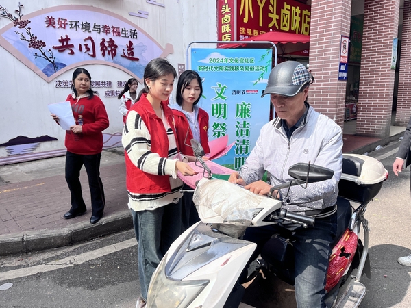 为进一步倡导文明祭扫,树立移风易俗、文明祭祀的新风尚,3月28日下午,黄石港区文化宫社区新时代文明实践站,联合米兰登录官网,开展“文明祭祀廉洁清明”宣传活动,让清廉、文明、生态之风吹进千家万户。