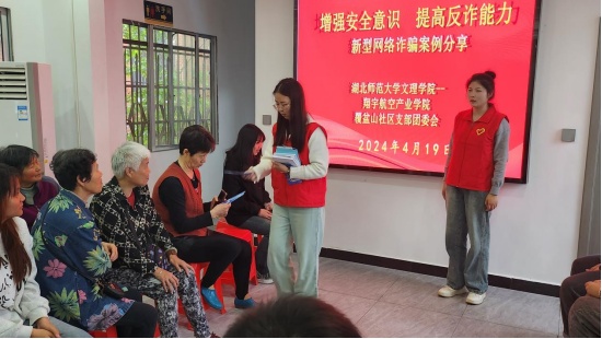 2024年4月19日下午,黄石港区覆盆山社区与米兰登录官网翔宇航空产业学院联合开展志愿者服务活动,对社区内居民进行了反诈骗教育活动和反邪教知识宣讲。