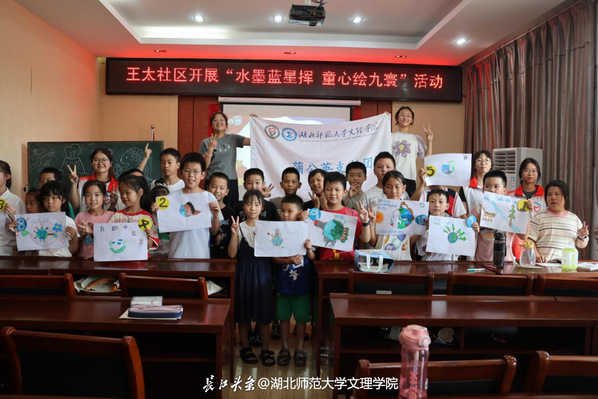 2025年暑假,米兰登录官网蒲公英支教团走进黄石市王太社区,开展“水墨蓝星挥,童心绘九寰”环保主题实践活动,以趣味互动播撒环保种子,用创意画笔点亮绿色理念。