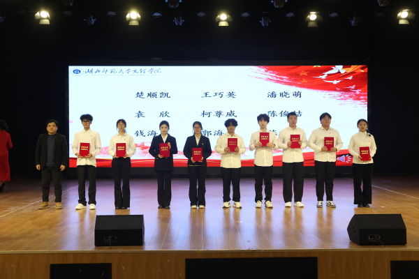 学工部部长刘建宣读表彰决定,对评选出的40名优秀志愿者与志愿者标兵、9支暑期优秀社会实践团队及2个优秀青年志愿服务支队予以表彰。校领导为获奖集体和个人代表颁发了荣誉证书。
