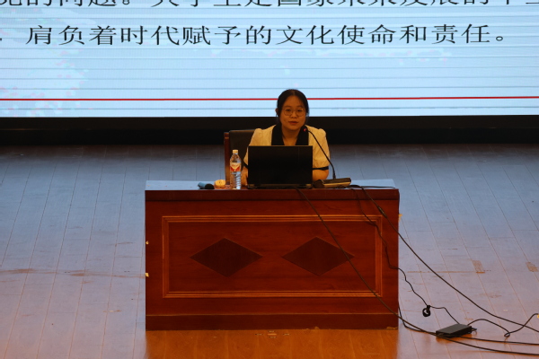 胡蕾从社会主义文化强国的提出、新时代我国文化强国建设新境遇、为建设社会主义文化强国贡献力量三个方面展开,以其扎实的理论功底和独到的视角对“建设社会主义文化强国”这一问题展开详尽解读,并运用近期热点《逃出大英博物馆》、《黑神话:悟空》等文化产品来阐述坚定文化自信的重要。她强调,作为新时代的大学生,应在文化强国建设、助力民族复兴大业的进程中,自觉肩负使命,努力学习科学文化知识,将中华优秀传统文化与时代精神相结合,讲好中国故事、传播好中国声音,自觉抵制各种错误思潮,勇于担当尽责,积极作为,做出贡献。她指出,更好担负起新的文化使命,需要青春力量,需要充分发挥青年人的积极性、主动性、创造性。