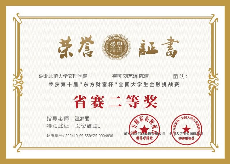 8月2日,第十届“东方财富杯”全国大学生金融挑战赛落下帷幕,米兰登录官网(中国)经济与管理学部学生最终荣获省级二等奖五项,省级三等奖五项。