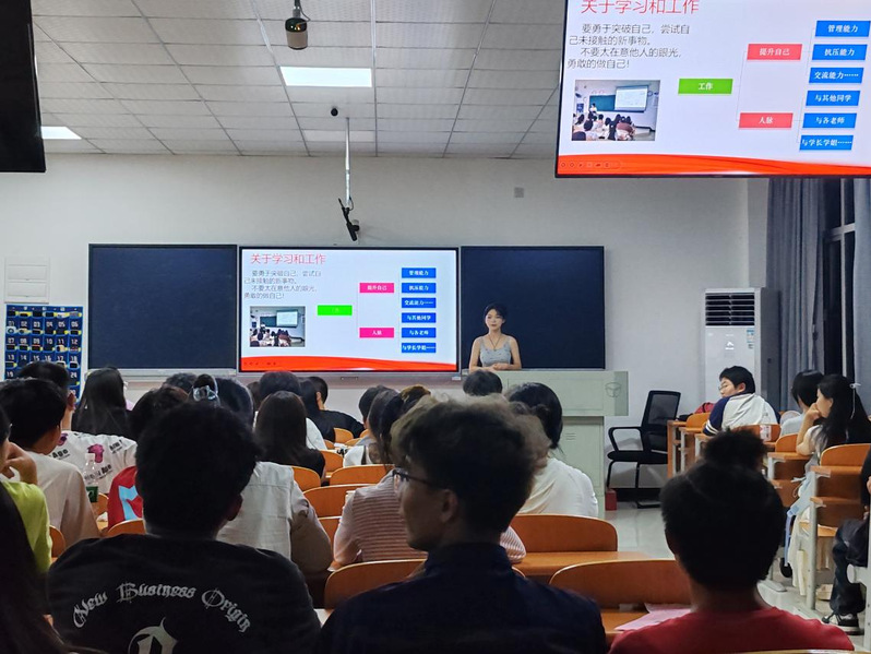 9月11日晚,开展“学长学姐说”学习经验分享会,由各个专业的优秀学子讲解他们的学习方法、专业技巧与未来规划。新生们认真聆听,与学长学姐们积极互动,提出了许多学习中的疑惑。大家纷纷表示受益匪浅,会以学长学姐为榜样,不断进取,奋发向上。