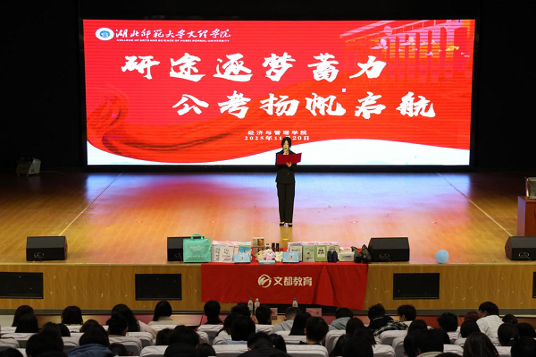 为助力学院学子科学规划升学与就业路径,提升备考竞争力,11月20日下午,经济与管理学院在学术交流中心举办“研途逐梦蓄力,公考扬帆启航”考研考公专题指导讲座。本次讲座邀请了湖北文都考研辅导名师王璐和灵鹏教育创始人、知名公务员辅导专家叶灵鹏两位老师作为主讲人,吸引了全院有意向考研、考公的学生踊跃参与。