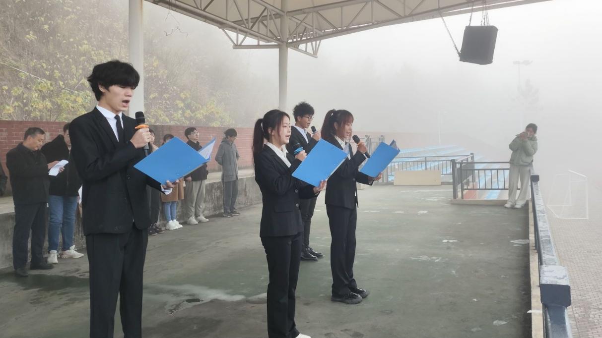 2023年11月27日,理工学部举行升旗仪式暨“寸心寄华夏,岁月赠山河”主题爱国主义教育活动。伴随着高亢、激昂的《义勇军进行曲》,擎旗手奋力挥动右臂,五星红旗冉冉升起,全体师生队列整齐、肃穆地行注目礼。