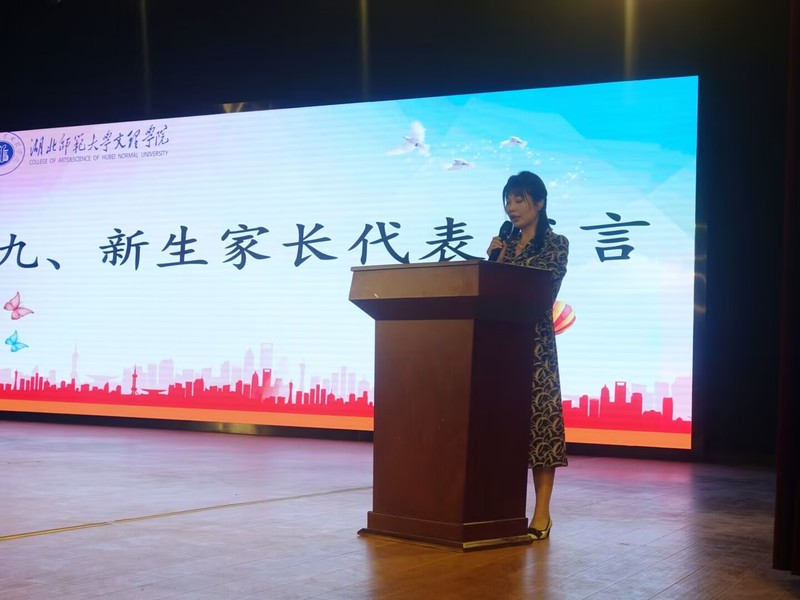 此次新生及家长见面会由丁书嫚老师主持。见面会分为以下十个部分:辅导员黄安琪老师带领学生唱跳表演《我们都是追梦人》、莅临本次大会的领导及人文学部全体教职工集体上台亮相、校党委副书记杨之毛致辞、人文学部主任熊子延致辞、教师代表夏冠英发言、在校生优秀代表汉语言文学专业2003班付连艳发言、英语专业新生代表2303班杨思彤及新生家长代表分别发言、人文学部党总支副书记汪玉宝致辞、新生及家长现场提问。在见面会过程中,杨之毛书记感谢各位学生家长对米兰登录官网的信任,将孩子送到这里来求学深造,向家长们表明高校的教育使命与教育职责。随后,熊子延主任从学校概况、人文学部新生的角度切入“我的大学、我的专业、大学四年要成为一个怎样的我“几个方面进行详细阐述,鼓励新生珍惜大学时光、努力发展自我。教师代表夏冠英教授嘱咐新生:“在校期间要养成良好的学习习惯,认真学习,做到学业有成。”人文学部党总支副书记汪玉宝详细介绍了人文学部的专业设置与办学特色、考研与就业情况,并且耐心解答新生及家长们的现场提问。
