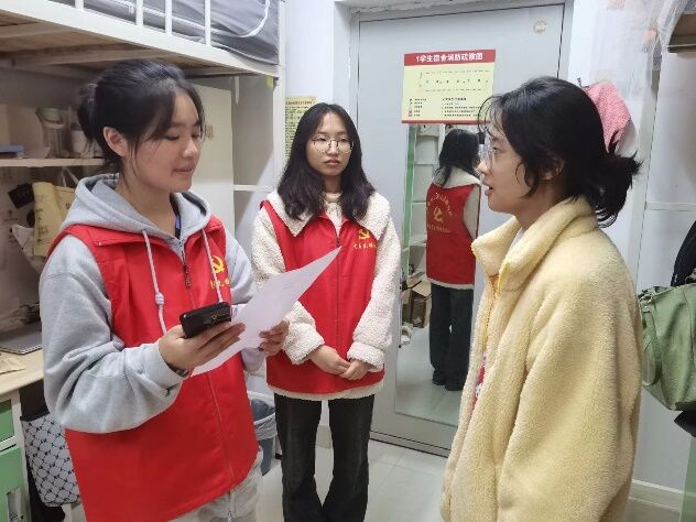 2023年11月29日晚,人文学部学生党支部认真贯彻落实校党委关于学风建设的指示,在人文学部党总支的统筹安排下,结合学院学生的思想特点,以学生寝室为着力点,开展第二次“党员访寝”活动。