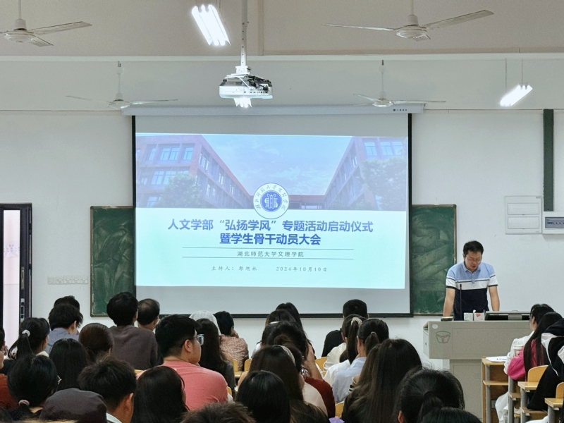 为进一步营造良好的学风氛围,强化学风建设,激发广大师生的学习热情,共同筑梦未来,20241011日中午12-13时,人文学部在3号实验楼418教室举行了“励学·笃行”学风建设主题教育启动仪式。人文学部主任熊子延、党总支书记周景斌出席仪式并发表讲话,仪式由学工办副主任、学生第二党支部书记郭旭林主持,学生第一党支部书记高悦、人文学部团总支书记胡文玉、人文学部全体辅导员老师、各班班长和学委共计120余人参加了此次活动。