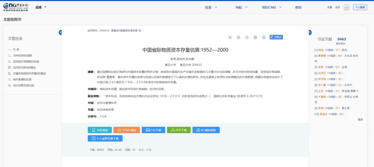 (5) 全新升级文献知网节,优化页面布局,首屏揭示节点文献的内容特征及可读性,构建以单篇文献为节点的世界知识网络,刻画以节点文献为中心的主题发展脉络,满足用户对选定文献全面感知及主题扩展的需求。