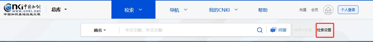 总库提供的检索项有:主题、篇关摘、关键词、篇名、全文、作者、第一作者、通讯作者、作者单位、基金、摘要、小标题、参考文献、分类号、文献来源、DOI。
