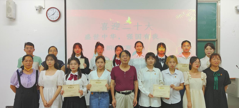 9月15日晚,人文学部学习部于教学楼1B101成功举办了以“喜迎二十大,盛世中华,强国有我”为主题的朗诵比赛。其旨在弘扬爱党爱国精神,习近平重要讲话的精神,传递红色积极正能量。