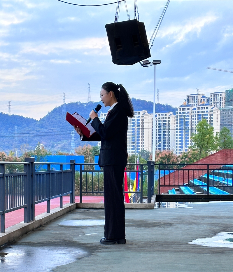 升旗仪式开始前,由主持人介绍本次升旗仪式的主题及意义,随后仪式正式开始。首先,升国旗、奏国歌、行队礼。然后,一支由在校学生组成的合唱团进行大合唱《歌唱祖国》和《我和我的祖国》。仪式第三项,由学生代表刘馨蔓发言,该生曾在第四届全国师范生微课比赛中获得特等奖,她围绕如何提高学习效率,培养正确的学习习惯,找到适合自己的学习方法等方面分享了自己的学习经验。接着,人文学部学生第二党支部书记郭旭林老师发表国旗下的讲话,郭老师从历史的角度提醒学生,应自强不息,争做有为青年。最后,人文学部主任熊子延发表讲话,熊主任给全体学生提出了几点思考和建议:一是热爱青春,立志担当青年使命;二是要珍惜大学时光,刻苦学习,做德才兼备的大学生;三是创设良好学风,做好学习和生活规划,在实践中实现自己的人生目标。