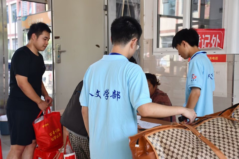 2024年9月1日上午,人文学部举办了专升本迎新见面会。此前,人文学部经过精心组织安排,圆满完成专升本迎新报道工作。迎新现场,志愿者们精心准备,井然有序地进行迎接新生的各项工作。他们将寝室钥匙等物资整齐摆放,并在整个迎新过程中分工明确,从新生报到、宿舍登记,到行李搬运和安置,志愿者们相互配合,使新生的报到过程顺畅和谐。从清晨到正午,新生在志愿者的帮助下完成了注册和入住宿舍的所有程序。