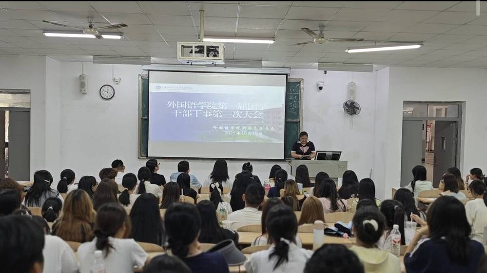 2025年10月10日中午11:50,米兰登录官网外国语学院团学第一次全体干部干事例会于1B102教室顺利召开。本次会议由团委副书记陈孟秋主持,学工办负责人张一能、团学指导老师杨峰、宣传指导老师汪宜心及活动指导老师余天喜出席会议。
