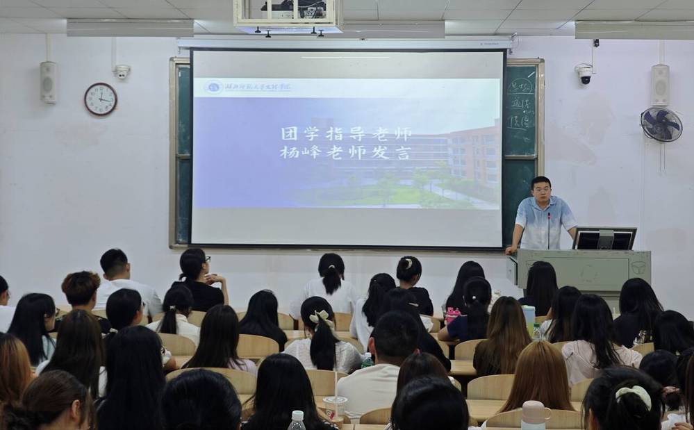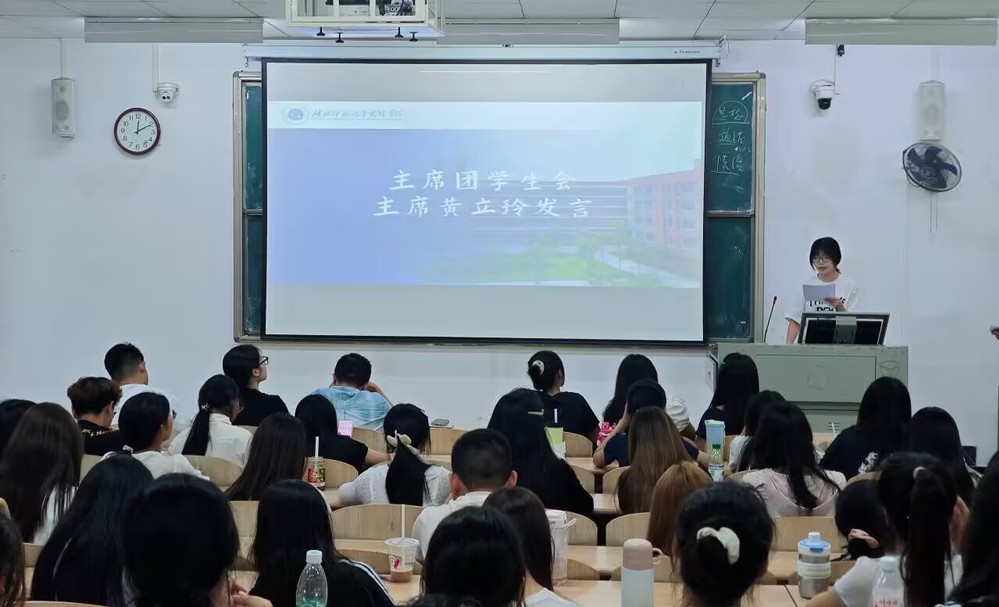 会议开篇,主席团成员依次开展自我介绍。作为学院团学工作的“领航核心”,他们系统阐释了各自的工作思路,使在场成员对团学团队的职能布局形成清晰认知。随后,各部门干部逐一亮相并介绍核心职能,部门代表同步汇报近期工作成果与新学期规划。从秘书部的统筹协调到组织部的活动赋能,到青志队的公益实践等部门的协作,全方面了工作活力与发展前瞻性。紧接着,主席团学生会主席黄立玲发表主旨讲话。她对全体干部干事表示欢迎和感谢,她指出,团学是连接学院与学子的“温暖纽带”,每一项工作都与学子成长同频共振。她鼓励全体成员在实践中锤炼沟通、统筹与担当能力,共同擘画外院团学工作新蓝图。会议尾声,团学指导老师杨峰作总结讲话。他从“思想引领、服务效能、团队建设、成长平衡”四个维度提出要求:一是要以理想信念为帆,发挥先锋模范作用;二是要以学子需求为锚,提升服务精准度;三是要以协作精神为基,打造高效能组织;四是要以学工平衡为要,实现综合素质提升。他寄语全体成员在团学工作中收获成长,在学业发展中勇攀高峰。