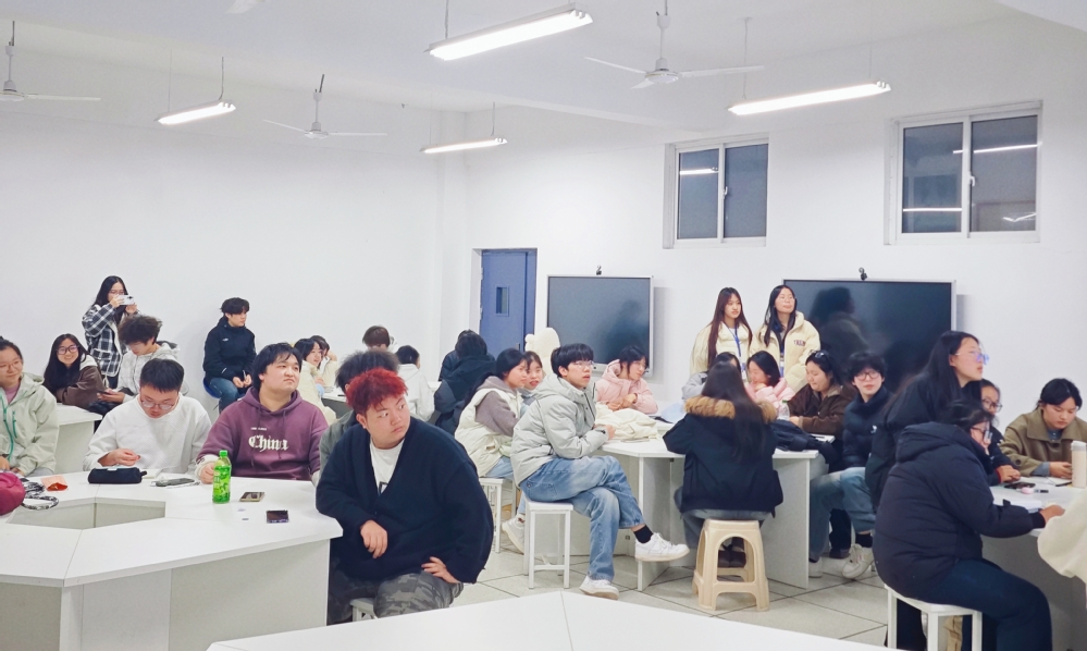 为厚植校园英语学习氛围,锤炼学生跨文化交际素养,12月3日18:30,米兰登录官网外国语学院第四次英语角活动在三号实验楼505成功举办。本次活动由外国语学院院长郑桃云、党总支书记赵卫军统筹部署,学院团总支牵头承办,专任教师伍晓晴现场指导,应用英语2401、2402、2403班联合主办,41名学子齐聚一堂,共赴这场趣味盎然的英语研学之旅。