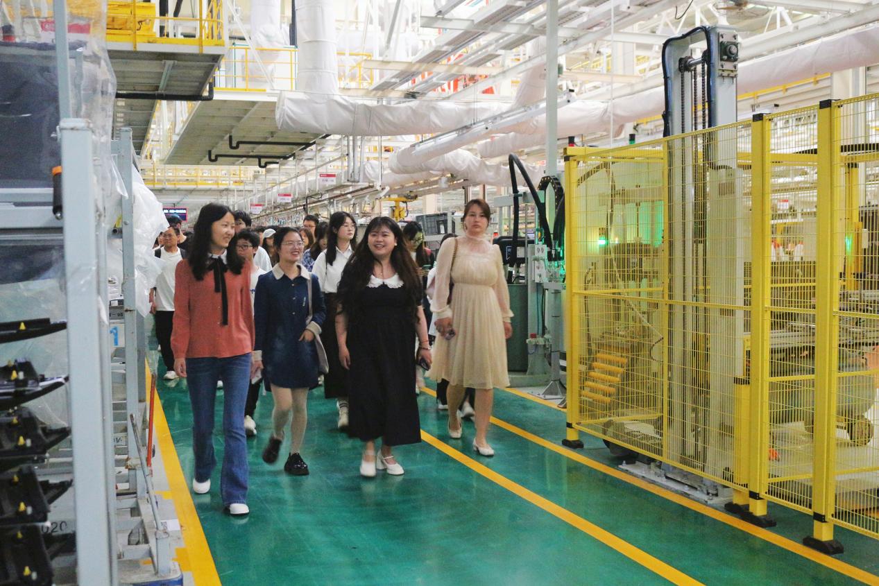 在企业工作人员的引导下,学生们参观了企业的各个部门,主要包括焊接车间、组装车间等,让同学们对企业内部的工作流程有了更加直观的认识。在实地参观时,不少同学被企业机器人操作等高科技画面吸引,发出些许惊叹。与此同时,学生也进行着交流互动,进一步了解企业员工工作内容、作息时间等职业细节问题。