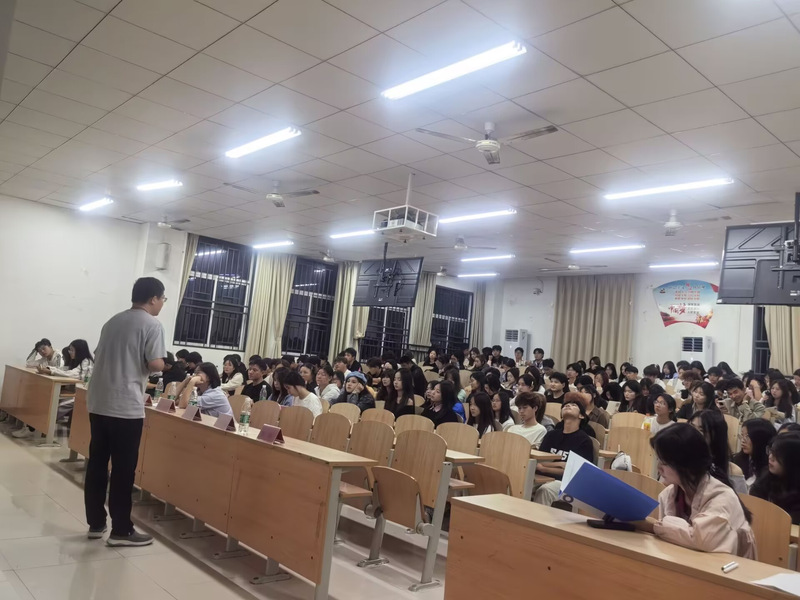 在热烈的掌声中,晚上19:15,心理中心曾程老师开启了心理委员系列讲座第一讲。讲座上,曾老师联系自身担任心理部长的经历,向在座同学抛出问题,为何想成为心理委员?在座同学踊跃发言,在场气氛逐渐升温。曾老师对此进行总结,在座各位的出发点关于予己与予人,倡导同学们对自身进行思考与探索,以及能够坚持帮助他人。随后深入向同学们讲解了抑郁症的相关知识,解释了抑郁症为何会导致人自杀。衔接到同学们如何践行帮助与保护他人的行为,曾老师邀请同学们积极上台书写,不一会儿,黑板上便写满了同学们的字迹。曾老师结合同学们所写,分享了大学时期的经历,启示同学们除了作为一个给予者,更重要的是成为一个分享者。深刻解析了集体的重要性,延伸到个人离不开集体的力量。讲座的最后,曾老师以轻松的语调欢迎在座同学参与下一次的讲座。