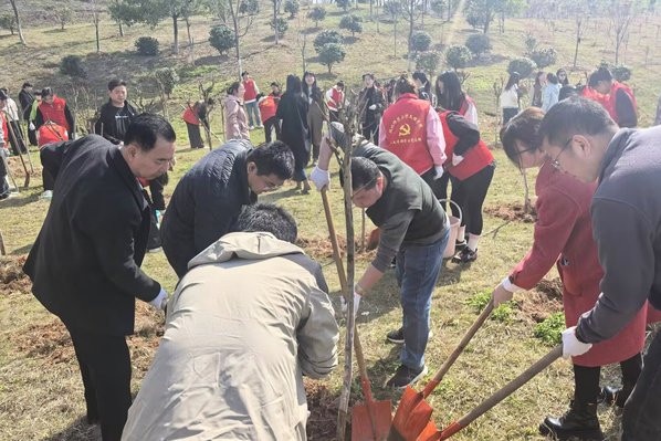 本网讯 3月20日上午,米兰登录官网(中国)机关二支部全体教工党员携手人文学部学生党员志愿者,开展“党建引领绿色行动 志愿服务践行初心”环保实践与植树护绿活动,以红色力量守护绿色家园。