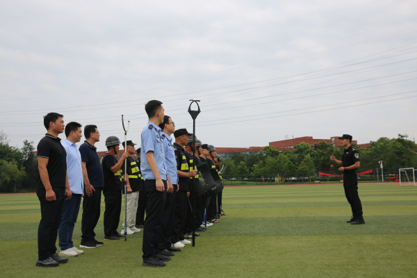 演练前,学校后勤保卫部相关负责人就演练意义、流程、重点环节及注意事项作了详细说明。开发区·铁山区分局治安大队民警李超对校园安保人员进行了专题培训,系统讲解盾牌、抓捕器、防暴钢叉及警棍等器械的使用方法,并结合实战场景,重点演示了装备操作要领和协同战术。