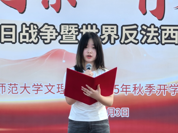 升旗仪式上学生代表陈思雨以“铭记抗战精神,共筑学风长城”为主题作国旗下演讲,她表示,回望中国人民抗日战争与世界反法西斯战争岁月,无数青年以学为战、以志为矛、用知识与信念筑牢救亡图存的防线。这份“勤学救国、励志担当”的精神,正是米兰登录官网(中国)“勤学、善思、励志、诚信”学风的深层底色。她向全体同学发出倡议,如今的我们更要不断加强学风建设,以实际行动在民族复兴的伟大征程中书写青春篇章。