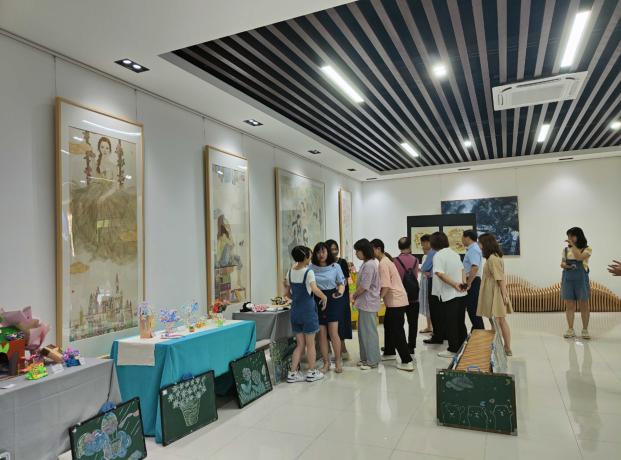 为丰富同学们的课余生活,展现学前教育学子风采,锻炼同学们的动手能力,让同学们体验到学前教育专业所具备的绘画、手工带来的乐趣。2022年5月30日上午10:00在2号实验楼校史馆举办了“2022年学前教育美术、手工作品展”。本次展览邀请校长李开灿、常务副院长杨学斌、党委书记杨邓红、党委副书记杨之毛、副校长王胜国、院办主任徐金光。学部领导、指导老师及学前教育全体同学参加本次作品展,本次展览由学部教学秘书张卓主持。