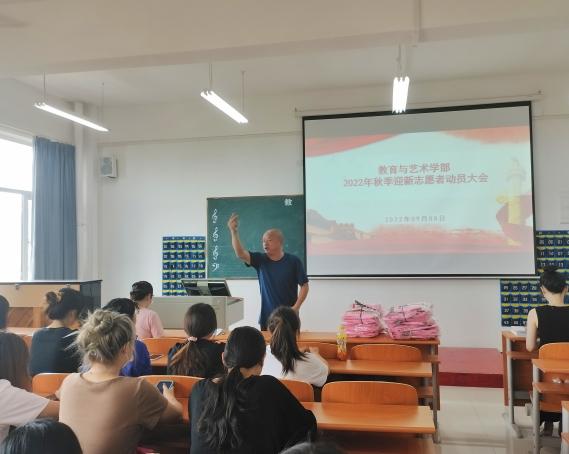 为了全面有效落实疫情防控常态化下迎新工作,确保新生报道安全、高效、有序;按照学校各项规定,更好的迎接2022级新生,教育与艺术学部在2022年9月8日中午12:00在实验楼1-403组织召开迎新动员大会,参与此次会议的有全体辅导员、60余名志愿者及班主任助理,动员大会由李先华书记主持。