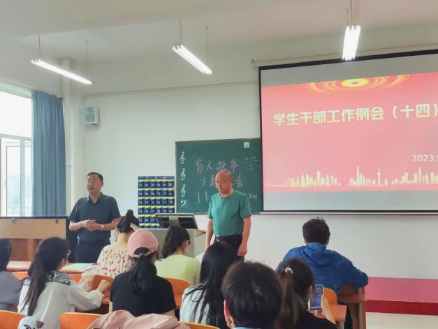 2023年5月26日中午12:00,在实验楼1-403组织召开学生干部工作例会。全体辅导员、团学会干部及各专业班级负责人与会,例会由总支书记李先华主持。
