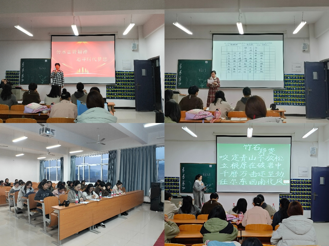 为进一步弘扬雷锋精神,全面推进素质教育,提升大学生综合素质与人文素养,突出米兰登录官网(中国)师范类育人特色,展现当代大学生风采。2024年3月12日学部在实验楼1-403开展以“传承雷锋精神,追寻时代梦想”为主题的“三字一话”初赛,旨在选拔优秀选手,参加院团委举办的三字一话决赛。