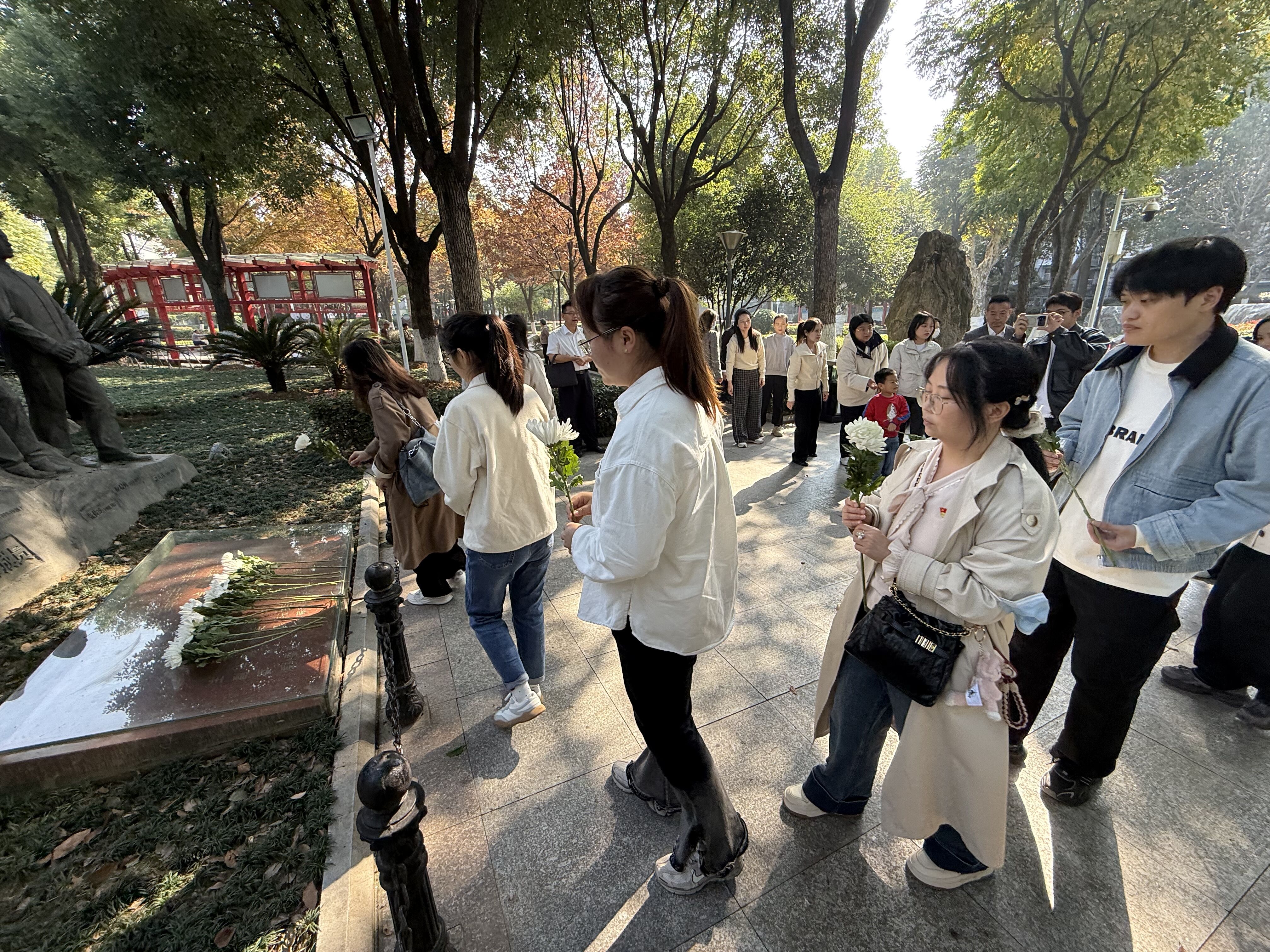 在中央监察委员会领导成员雕像前,活动氛围庄严肃穆。全体党员列队肃立,怀着无比崇敬的心情向革命先烈敬献鲜花,深深鞠躬并默哀沉思。鲜花寄哀思,默哀敬忠魂,这一庄重仪式不仅是对革命先烈的深切缅怀,更是对初心使命的再次叩问与坚守。